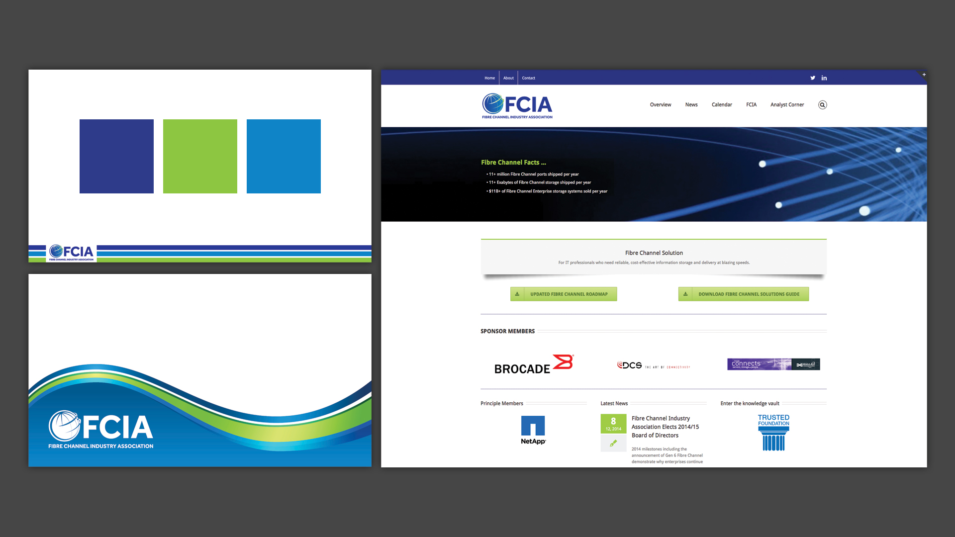 FCIA provides capabilities in storage networking, cluster computing, and network interconnect to meet the IT needs of organizations worldwide. To reflect global connectivity in the design, I simplified the globe while maintaining clean, sharp lines to emphasize movement. I also introduced more color to add the energy that was previously lacking.