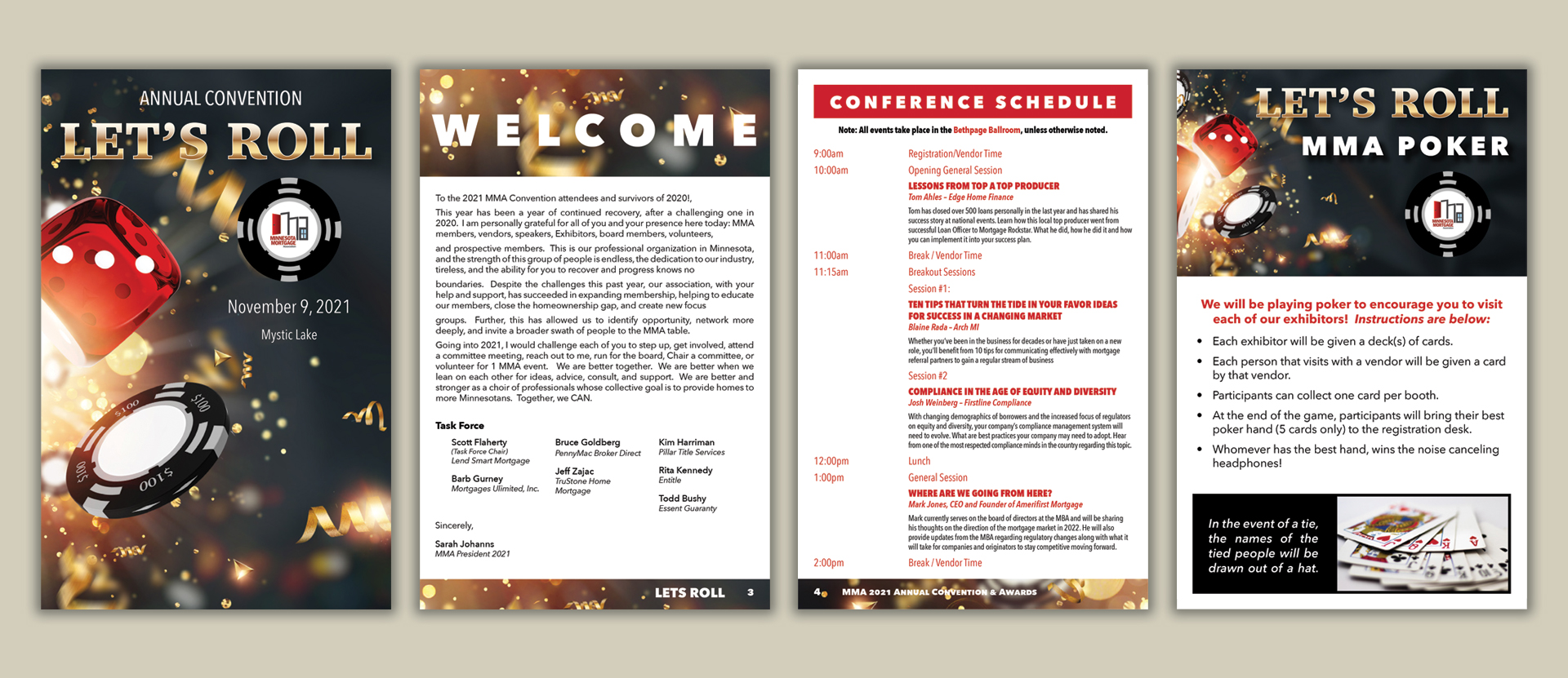 The MMA needed a design for their 2021 Annual Convention, which was held at a casino. I incorporated the casino theme into the design that was ultimately chosen.